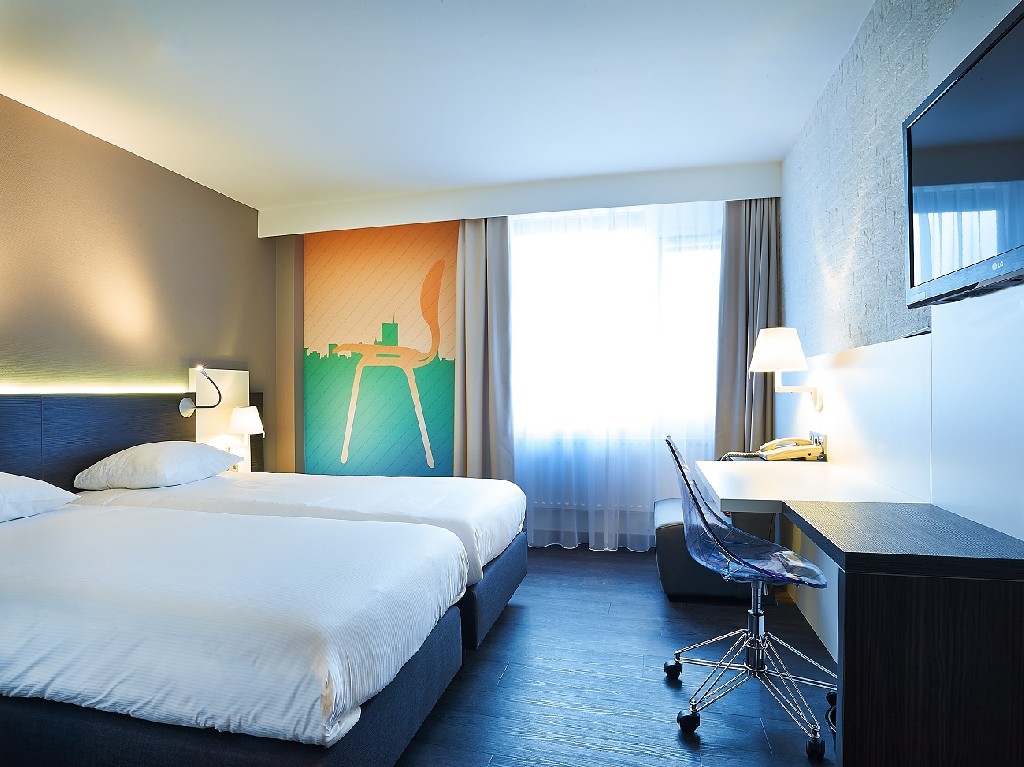 Each room of Postillion Hotel Dordrecht comes with box-spring bedding, a flat-screen TV and a desk area.